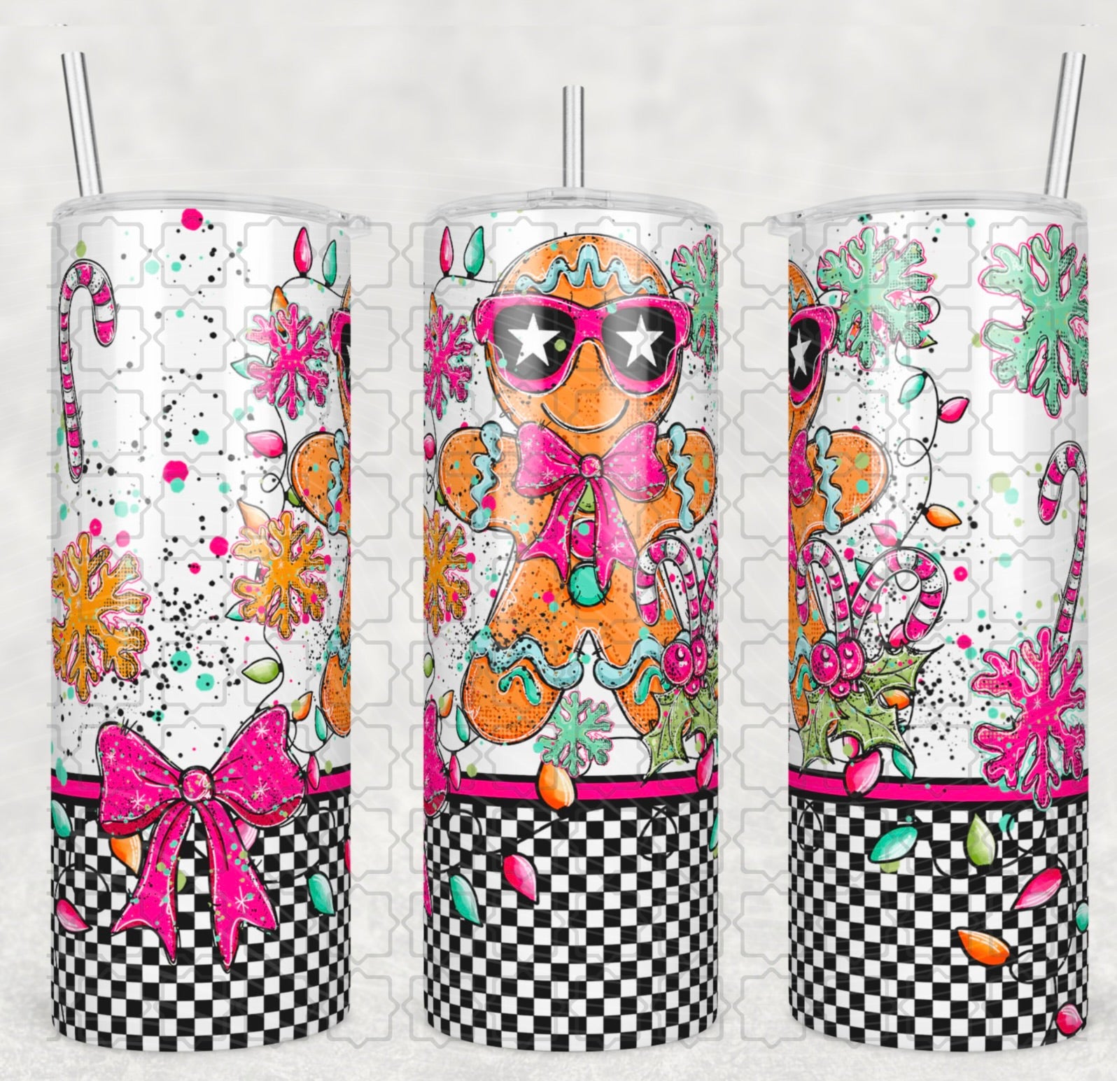 Colorful Christmas Snowman Sublimation Print for 20oz Skinny Tumbler